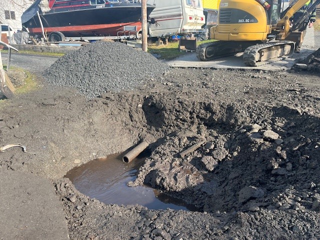A service connection also broke just south of the Public Safety Building on Zimovia Highway. Additionally, a resident reported what appeared to be a third incident — a settled storm drain in a downtown parking lot near City Hall. Public Works dug it up and fixed it the following day.