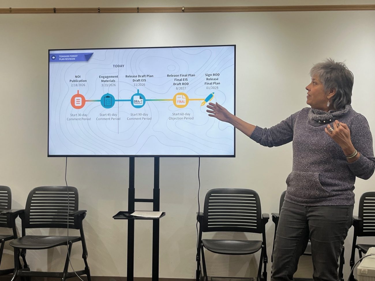 Tongass National Forest Deputy Supervisor Barb Miranda visited Wrangell April 21 and gave a brief presentation to community members.